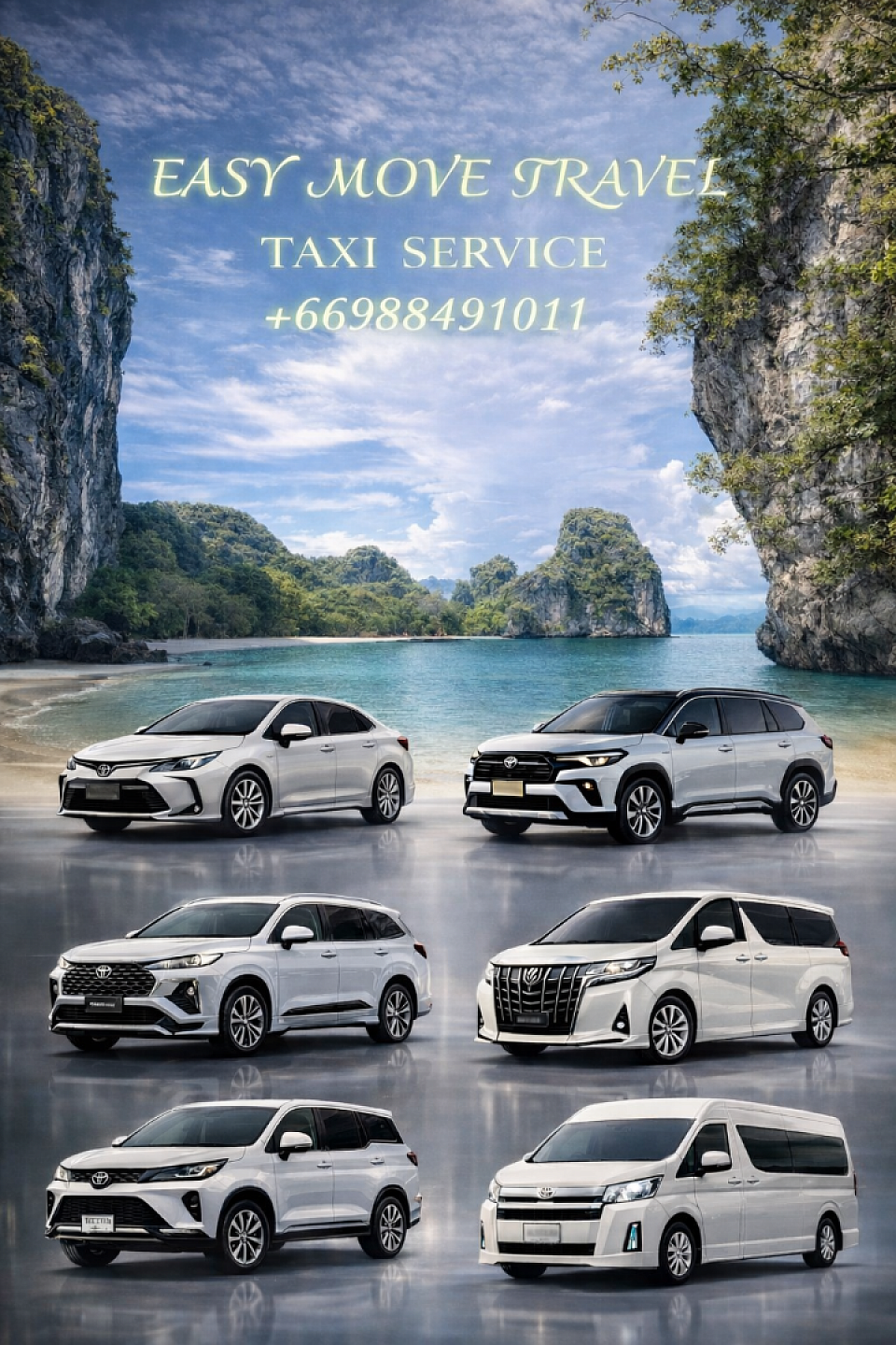 บริษ้ท EASY MOVE TRAVEL จำกัด ให้บริการแท็กซี่ภาคใต้ ตลอด24 ชั้วโมง จองแท็กซี่รับ-ส่งสนามบิน เช่ารถพร้อมคนขับ บริการเหมารถท่องเทียว 0988491011
